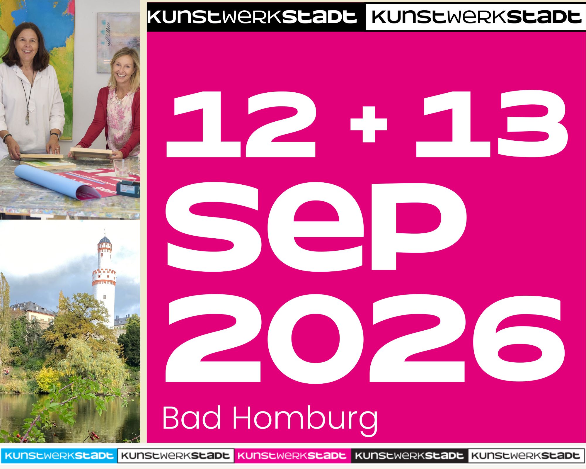Die Bad Homburger KunstWerkStadt findet am 12.-13. SEPTEMBER 2026 jeweils von 11:00 bis 18:00 Uhr statt.
