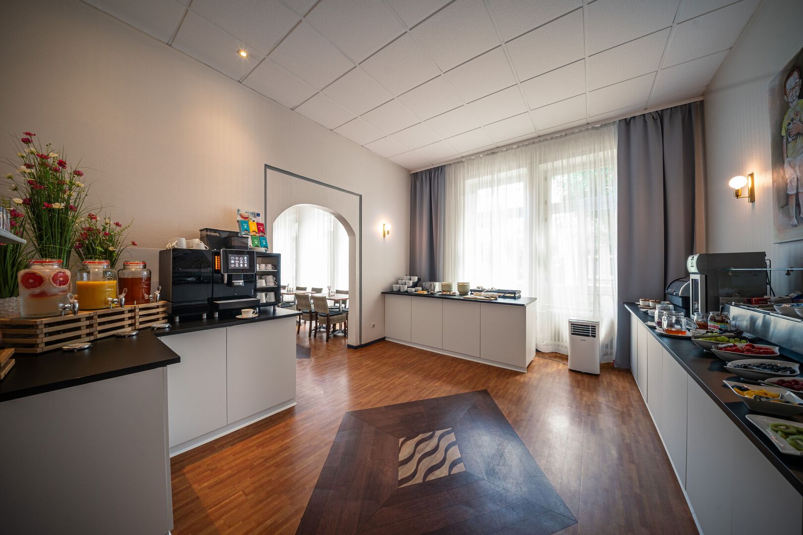 Zusätzliche Annehmlichkeiten: Ein Zimmersafe für Wertsachen, ein Kühlschrank sowie ein Wasserkocher oder eine Kaffeemaschine sind im Komfortzimmer vorhanden. Für den schnellen Genuss stehen Teebeutel und Kaffeepads zur Verfügung. Der Spiegel und ein großzügiges Beleuchtungskonzept machen den Raum zusätzlich einladend.